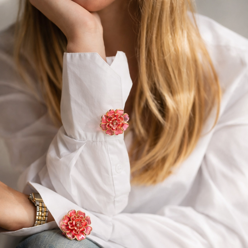 Wystarczy przypiąć je na istniejące guziki, aby w kilka sekund odmienić prostą koszulę lub bluzkę w wyjątkowy, dopracowany look. Wielokrotnego użytku, lekkie i zaprojektowane tak, by przyciągać spojrzenia.